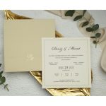 9251 Krem Zarf üzerine gelin damat isim harflerinin yaldız olarak uygulandığı iç parça kartı aynı şekilde krem olan sade şık bir davetiye