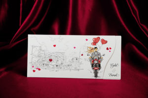 Motorlu Gelin Damat Figürlü 140 Nolu Davetiye